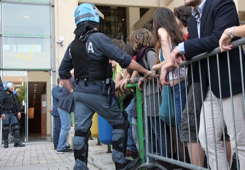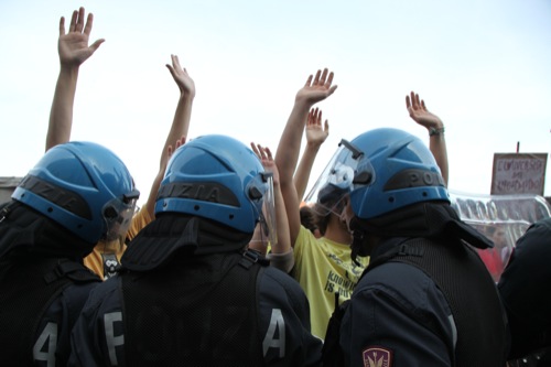Alcuni manifestanti sono riusciti ad entrare nella Sala dei 500 e hanno cercato di srotolare uno striscione e distribuire volantini. Altri studenti hanno cercato di intrufolarsi da un passaggio secondario, c’e’ stata una carica di alleggerimento della polizia, un giovane e’ rimasto ferito.