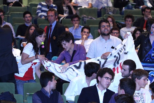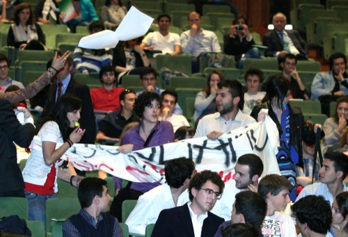 L’incontro “Avere 20 anni in Italia: grande prospettiva o misera possibilità” con il Ministro dell’Istruzione Francesco Profumo, organizzato dagli studenti MNP (Muoviti per la Novità) al Lingotto, è stato contestato dagli studenti e borsisti del movimento “Via Verdi 15 occupata”.