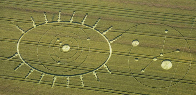 Grandi cerchi di grano sono stati scoperti nelle campagne che circondano Santena, precisamente a Poirino (TO) . Rappresentano il sistema solare raccolto in un’ellisse, con accanto la rappresentazione della costellazione del Cancro. Secondo gli esperti, che hanno potuto esaminare la prima immagine scattata da un ultraleggero, la posizione dei pianeti corrisponde alla data del il 21 dicembre 2012: niente meno che la fine del mondo profetizzata dal calendario Maya. Non è la prima volta che Poirino è teatro di nascita dei cerchi nel grano, infatti nel 2011 e nel 2010 erano comparsi altri bellissimi cerchi.