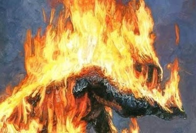 Subito soccorso dai carabinieri è stato ricoverato all’ospedale Sant’Eugenio in prognosi riservata. Ha riportato ustioni di secondo e terzo grado sull’85% del corpo ed in condizioni gravi.