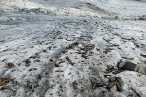 In una posizione più nascosta e ad una quota di quasi 3200 metri s.l.m., al di sotto della Cima Ago di Nardis, è stata così individuata un’area di alcune centinaia di metri quadrati, ove giacevano disseminati gli ordigni bellici.