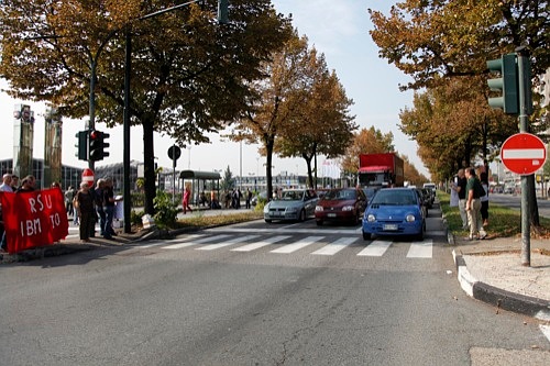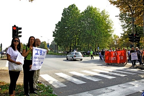 In atto una manifestazione con sciopero dei lavoratori dell’Ibm, per protestare contro i trasferimenti e lo spostamento di commesse verso la sede di Milano Segrate e la delocalizzazione di attività nell’Est Europeo .