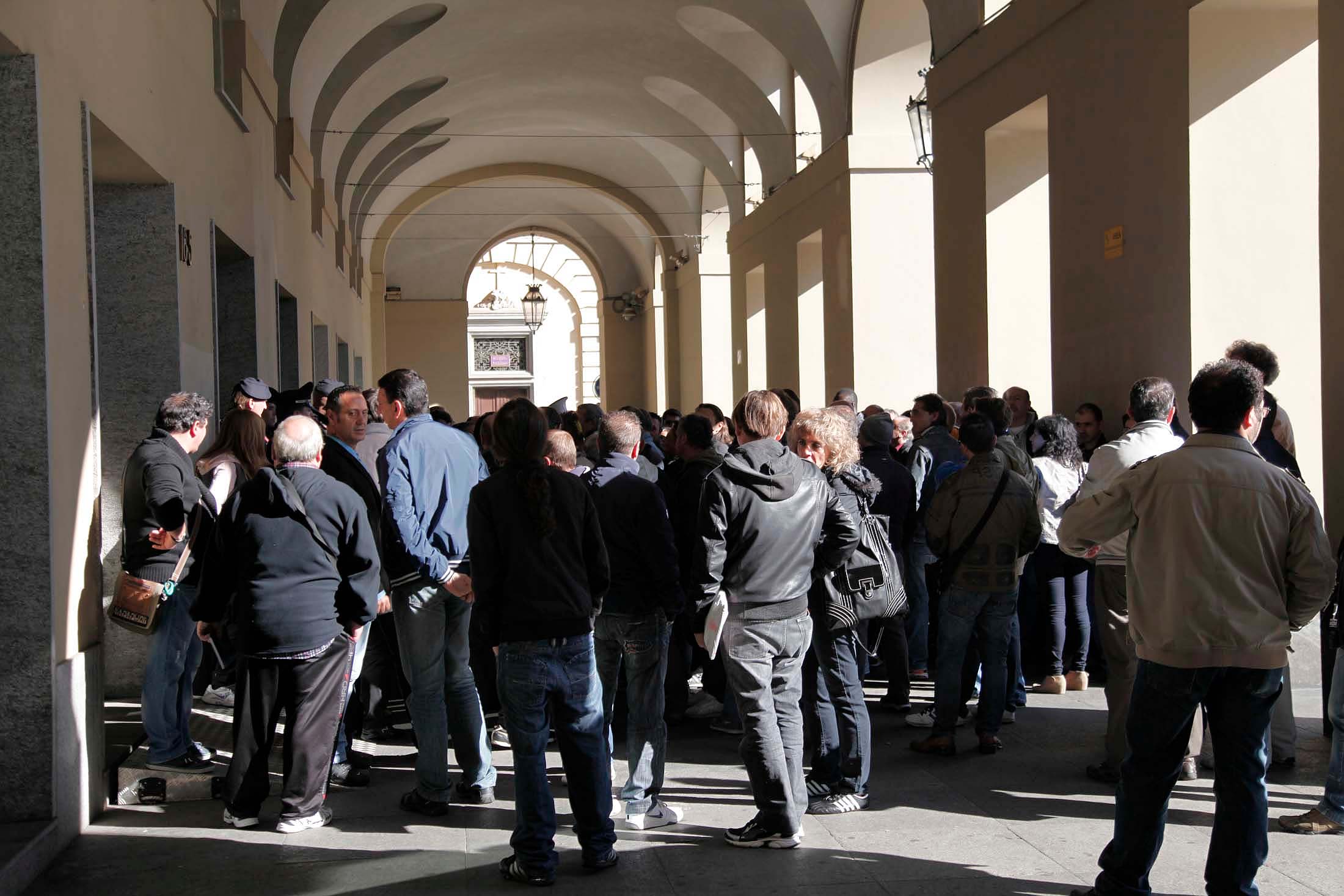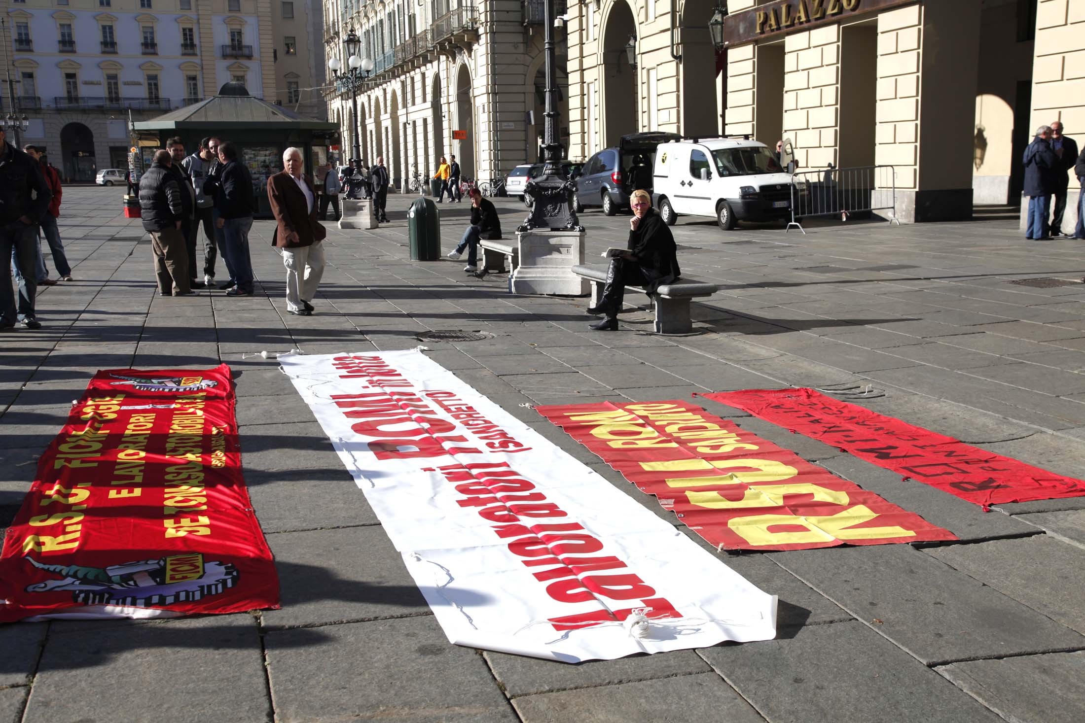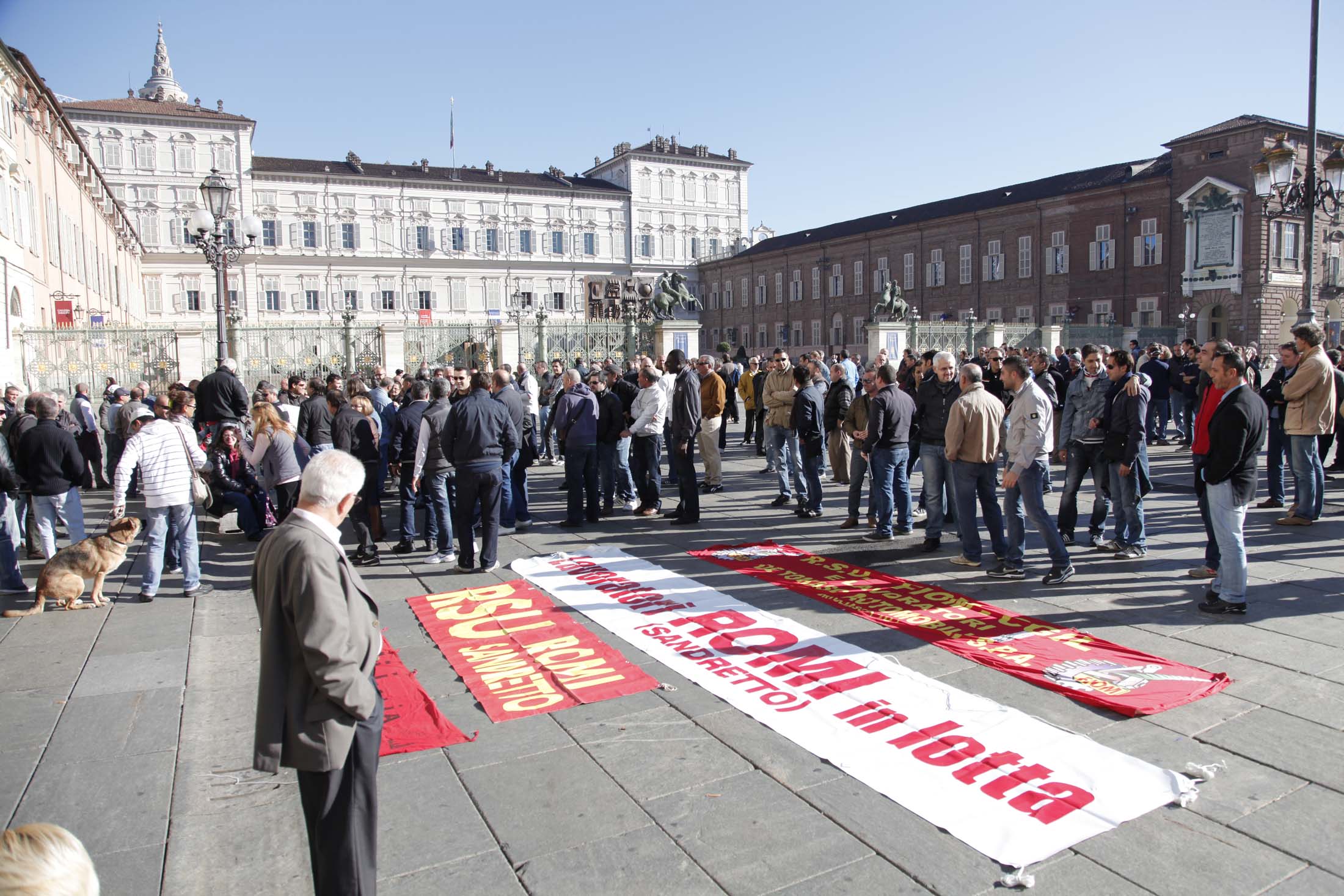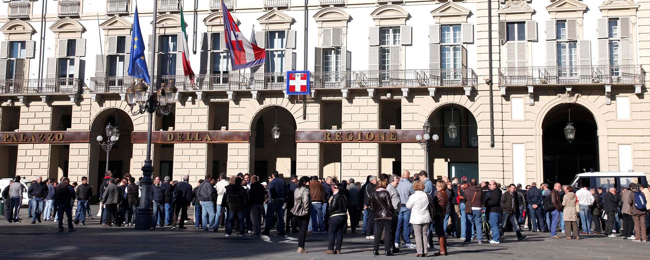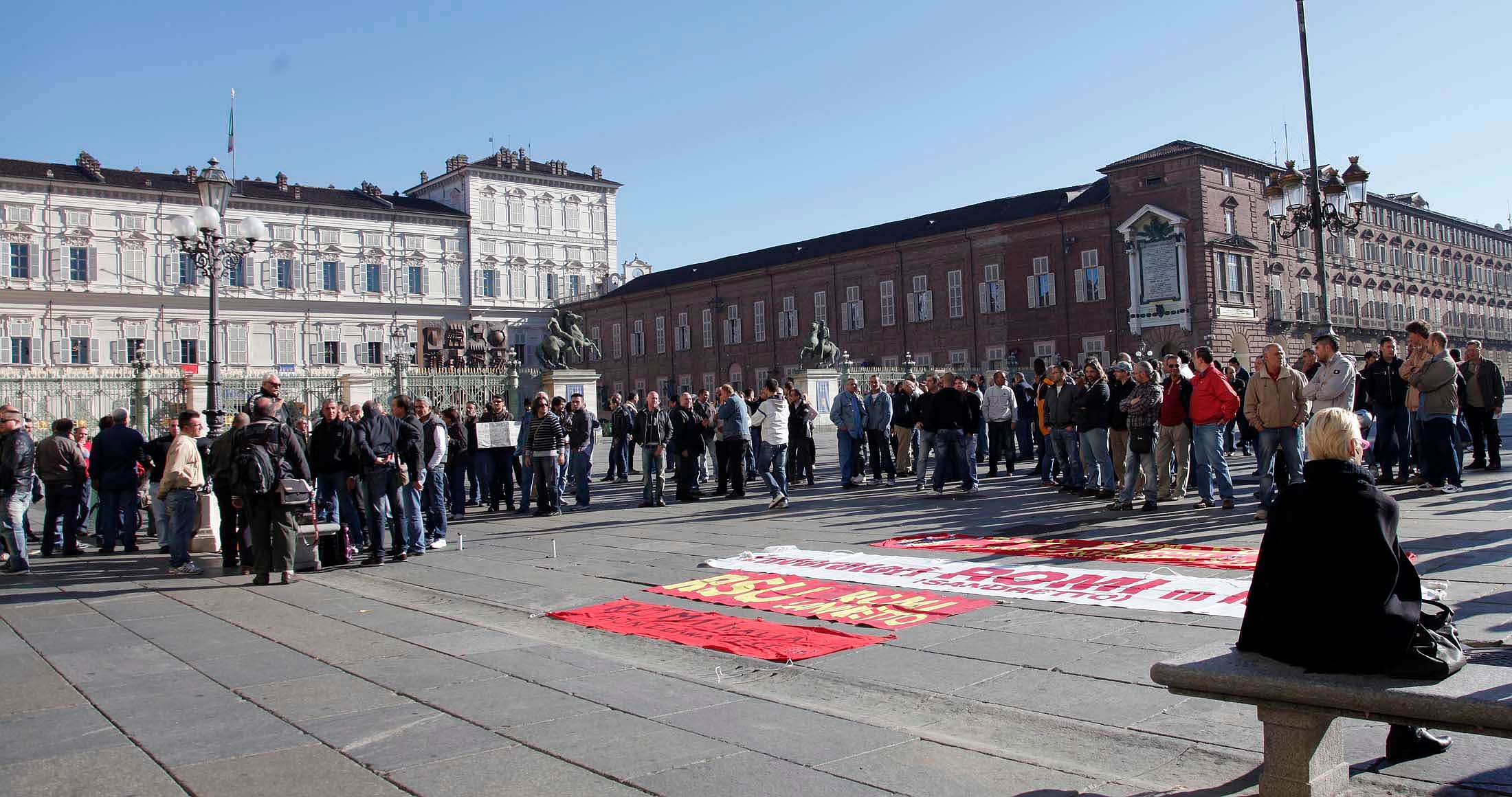 Questa mattina in piazza Castello i lavoratori della De Tomaso e della Sandretto si sono trovati per manifestare davanti alla sede della Regione. I lavoratori denunciano lo stato di crisi in cui versano le aziende, non solo le loro, ma molte di quelle presenti in provincia di Torino.