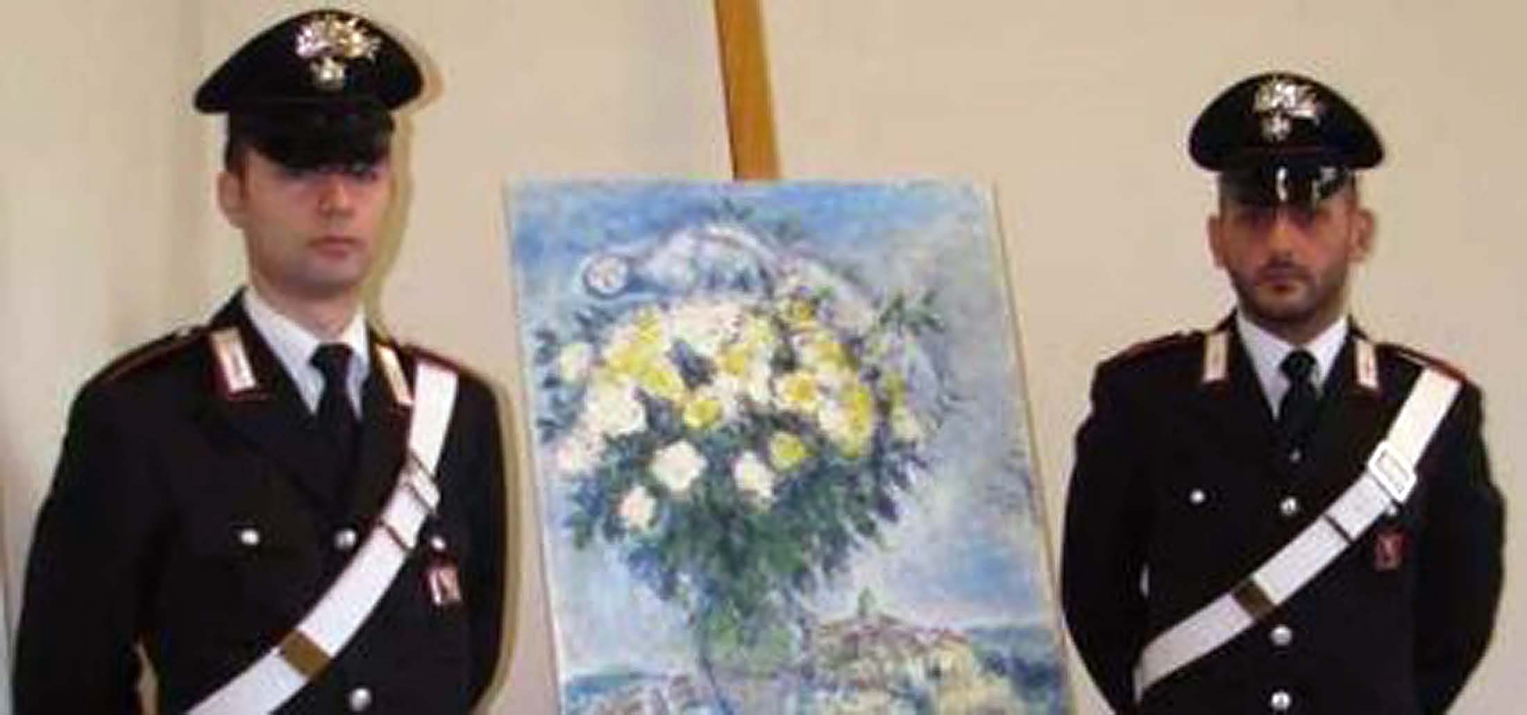 Una quadro del celebre artista russo Marc Chagall, rubato nel 2002 su uno yacht statunitense ormeggiato al porto di Savona, e’ stato recuperato dai carabinieri del nucleo tutela patrimonio culturale di Torino, dove si trovava nell’abitazione di un ignaro compratore. Tre persone sono state denunciate per furto e ricettazione, tra cui un romeno ex componente dell’equipaggio dell’imbarcazione e un gallerista di Bologna.L’opera intitolata ”Le nu au Bouquet”, e’ stimata 1.200.000 euro. Il dipinto venne acquistato nel 1988 in una galleria d’arte di New York da un facoltoso cittadino statunitense che lo volle collocare a bordo del proprio yacht. Dal febbraio 2002 al gennaio 2003 l’imbarcazione rimase ferma nel porto di Savona per lavori di manutenzione. Il furto avvenne in questo periodo e fu scoperto dal figlio del proprietario, nel frattempo deceduto, che, come legittimo erede, venne in Italia a ritirare la barca.
