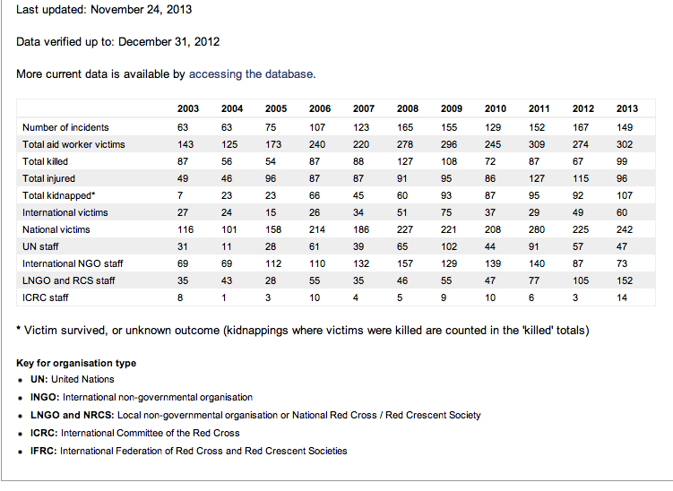 Almeno 36 operatori umanitari sono stati uccisi in Afganistan quest’anno, lo riferisce l’ONU, denunciando gli attacchi e la tendenza preoccupante. La partenza delle truppe occidentali, nel 2014, lascerà le forze afghane da sole a combattere i talebani, ciò sarà un problema di sicurezza per i lavoratori stranieri e i loro colleghi afghani che lavorano su progetti di sviluppo e di ricostruzione in tutta la nazione. “Sono molto interessato a questa tendenza in un momento in cui il paese è nel bel mezzo di una transizione difficile, che porterà ad un aumento dei bisogni umanitari “, ha detto Mark Bowden, coordinatore umanitario delle Nazioni Unite in Afghanistan. Solo questo mese nove operatori umanitari sono stati uccisi in Afghanistan. Secondo il database della sicurezza di Aid Worker, 73 operatori umanitari sono stati uccisi, rapiti o feriti in Afghanistan nell’anno 2012 . Quest’anno è il più sanguinoso per gli operatori umanitari da quando i talebani sono stati estromessi nel 2001, aumenta inoltre anche il numero delle vittime civili.