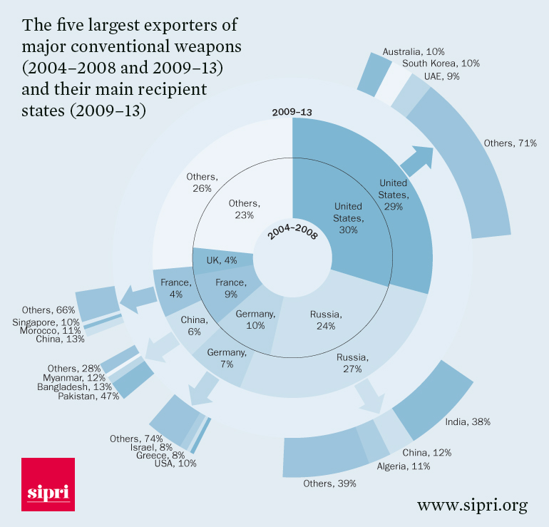 ‘The five largest exporters of major conventional weapons -2004-2008 and 2009-13- and their recipient states -2009-13’ Published 02/04/2014 at 770 × 739 in Armi, fornitori e importatori ‹ Back
