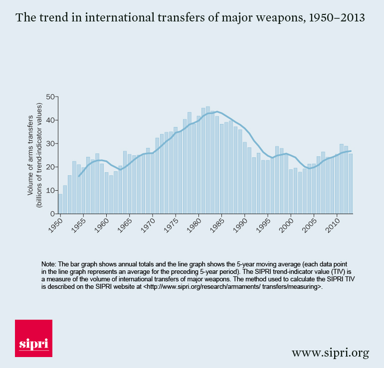 ‘The trend in international transfers of major weapons- 1950-2013’ Published 02/04/2014 at 770 × 739 in Armi, fornitori e importatori ‹ Back