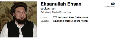 Ehsanullah, che aveva minacciato di attaccare il Regno Unito, offriva le sue competenze professionali con ben 69 contatti sul network.
