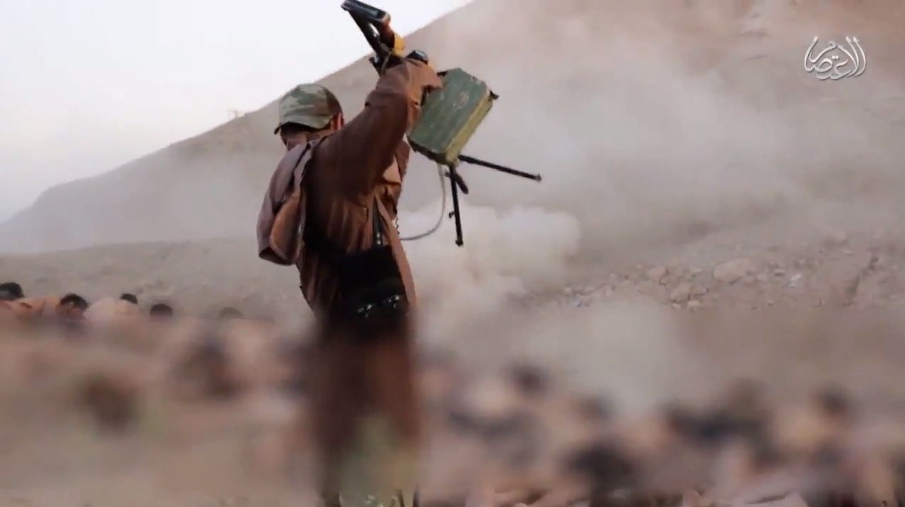 Nel filmato si vede un militante che spara un proiettile e crea di seguito una fiamma seguita da una nuvola di denso fumo bianco che colpisce una vasta area.