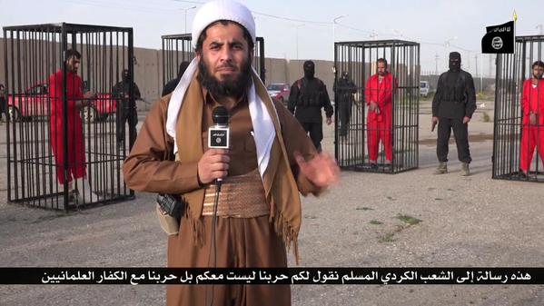 La follia non si ferma, come neanche la crudele propaganda dell’Isis che e’ tornata a diffondere immagini di 21 prigionieri peshmerga curdi rinchiusi in gabbie e fatti sfilare in parata per le vie di una città della provincia di Kirkuk, in Iraq. Il video mostra i peshmerga con le tute arancioni mentre vengono interrogati dietro le sbarre da un jihadista.