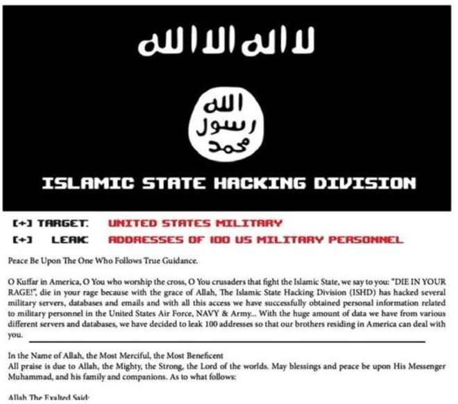 Identificandosi come “Islamic State Division Hacking,” il gruppo ha affermato di aver ottenuto le informazioni del personale militare dal server, database ed e-mail militari.