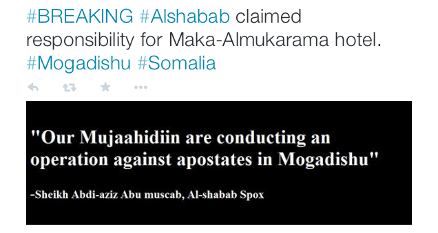 Il gruppo ribelle Al-Shabaab ha fornito aggiornamenti in tempo reale degli eventi attraverso la sua stazione di Al-andulus che è la radio ufficiale.