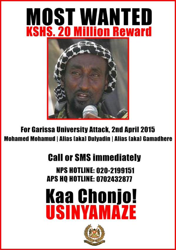 Il governo del Kenya ha messo una taglia di 217.000 $ su Mohamed Kuno, che è un funzionario di alto rango del gruppo al-Shabaab, e probabilmente la mente dell’attacco.