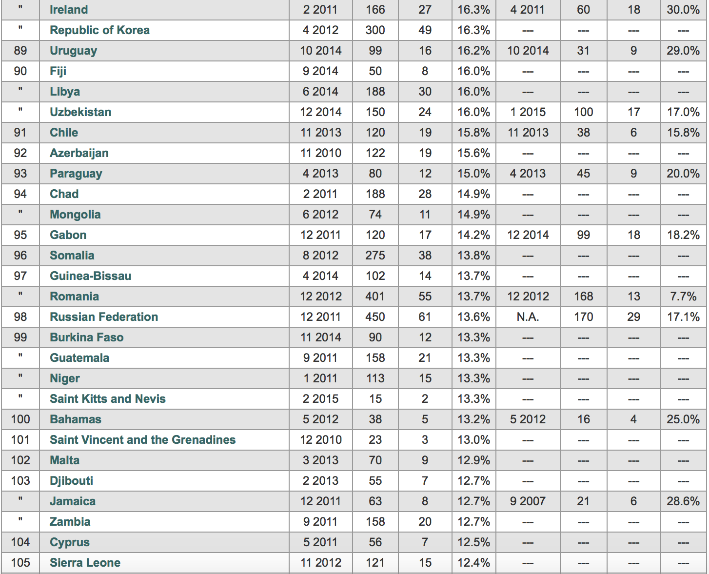 La presenza delle donne nei parlamenti nazionali