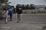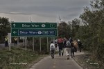 Ad un certo punto, un gruppo numeroso attraversa l’autostrada, chiusa al traffico, e si mette in marcia verso Nickelsdorf, una cittadina ad un paio di chilometri dal confine. Lungo la strada decine di autobus sono fermi in attesa di ordini, mentre continuano ad arrivare persone. In cammino ci sono famiglie con bambini molto piccoli, mamme sfinite con i figli in braccio che crollano per la stanchezza. Un gruppo di volontari accoglie i rifugiati all’entrata della città, offrono cibo, acqua, impermeabili, passeggini, e informazioni. Spiegano che oggi sono stati interrotti tutti i collegamenti con Vienna e con la Germania: è impossibile proseguire con qualsiasi mezzo di trasporto pubblico.