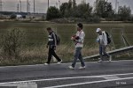 Arrivati alla stazione di Hegyelshalom, vengono fatti scendere e scortati da poliziotti arrivati da tutta l’Ungheria, si incamminano per circa 4 chilometri fino alla frontiera, dove oggi erano ammassate circa diecimila persone in attesa di essere trasportate, ma non si capiva dove.