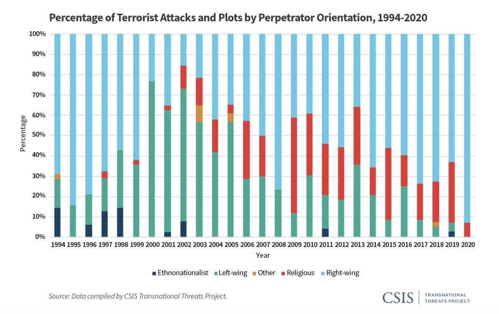 La maggior parte dei nuovi gruppi nell’elenco è affiliata a organizzazioni terroristiche salafita-jihadiste, tra cui al-Qaeda e ISIS. Ma quattro dei nuovi gruppi aggiunti nell’elenco appartengono alla categoria degli estremisti violenti di estrema destra, supremazia bianca o neonazisti.