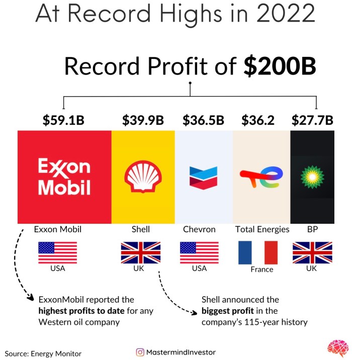 Secondo l’analisi di Vipul Sharma di Mastermind Investor, ci sono state cinque aziende che hanno ottenuto profitti superiori ai 200 miliardi di dollari nel 2022.