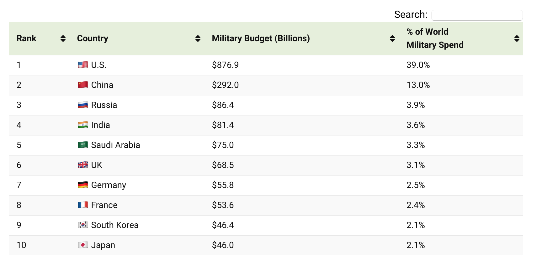 Nel corso dell’anno passato, gli investimenti in ambito militare sono cresciuti a livello mondiale, con gli Stati Uniti che hanno destinato circa il 38% del loro PIL alle spese militari. La situazione geopolitica instabile ha spinto molti paesi ad aumentare i propri budget per la difesa, mentre la guerra in Ucraina ha determinato un ricalcolo dei bilanci militari nella regione. Secondo i dati resi noti dall’Istituto Internazionale di Ricerca sulla Pace di Stoccolma (SIPRI), nel 2022 i budget militari globali hanno raggiunto un record di 2,2 trilioni di dollari, registrando un incremento per l’ottavo anno consecutivo.
