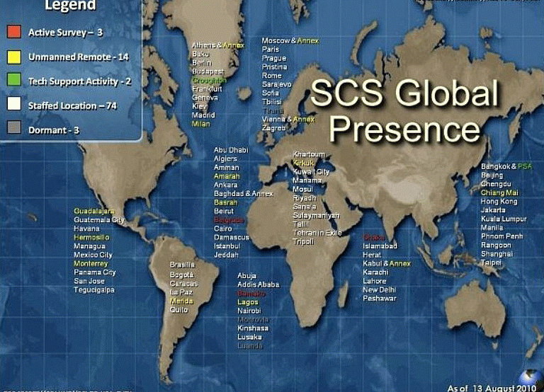Tra le azioni più emblematiche del SCS si ricorda la Guerra Fredda, quando microfoni venivano piazzati persino su colombe poste sul palazzo dell’Ambasciata sovietica a Washington. Nel 1999, il SCS monitorò campi di addestramento di al-Qaeda in Afghanistan e fu determinante nello smantellamento della rete di Saddam Hussein tramite intercettazioni in Iraq.