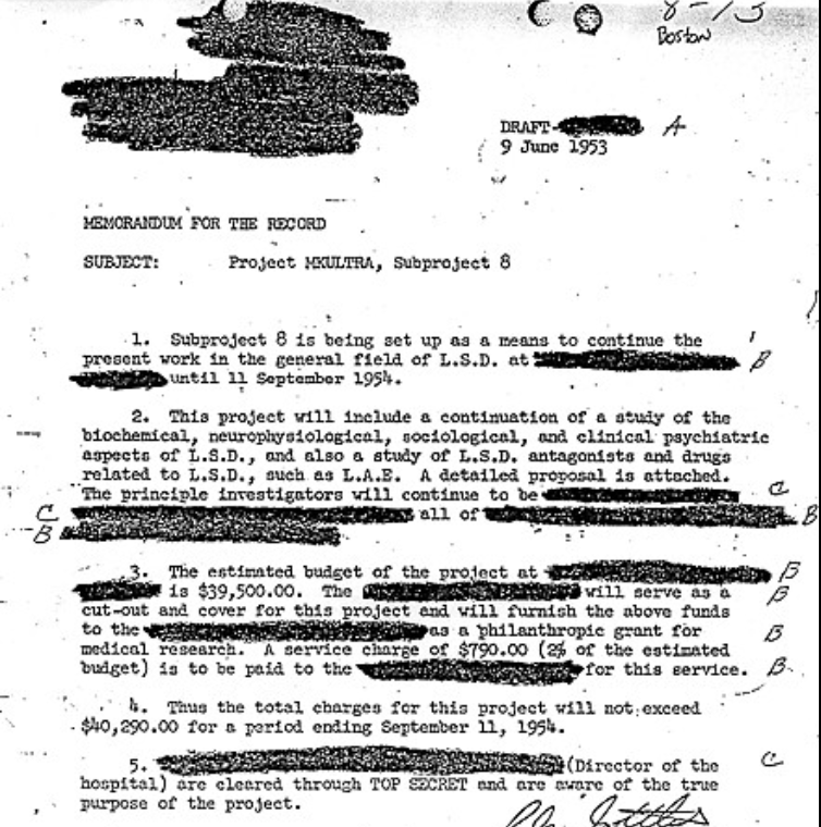 - CIA, Project Artichoke: Special Research on Human Behavior, documenti declassificati, 1951–1953. ↩