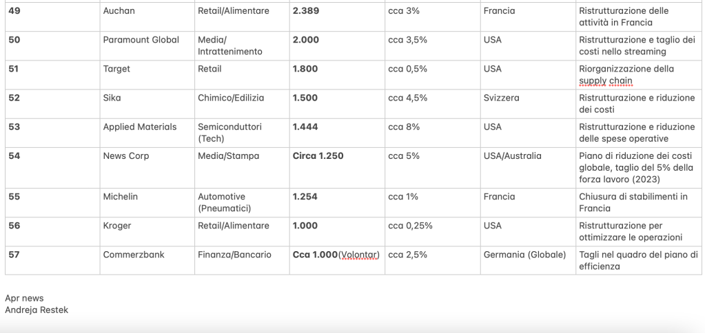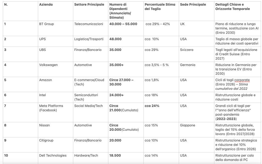 Elenco dei Maggiori Licenziamenti Globali (2023-2027+)
